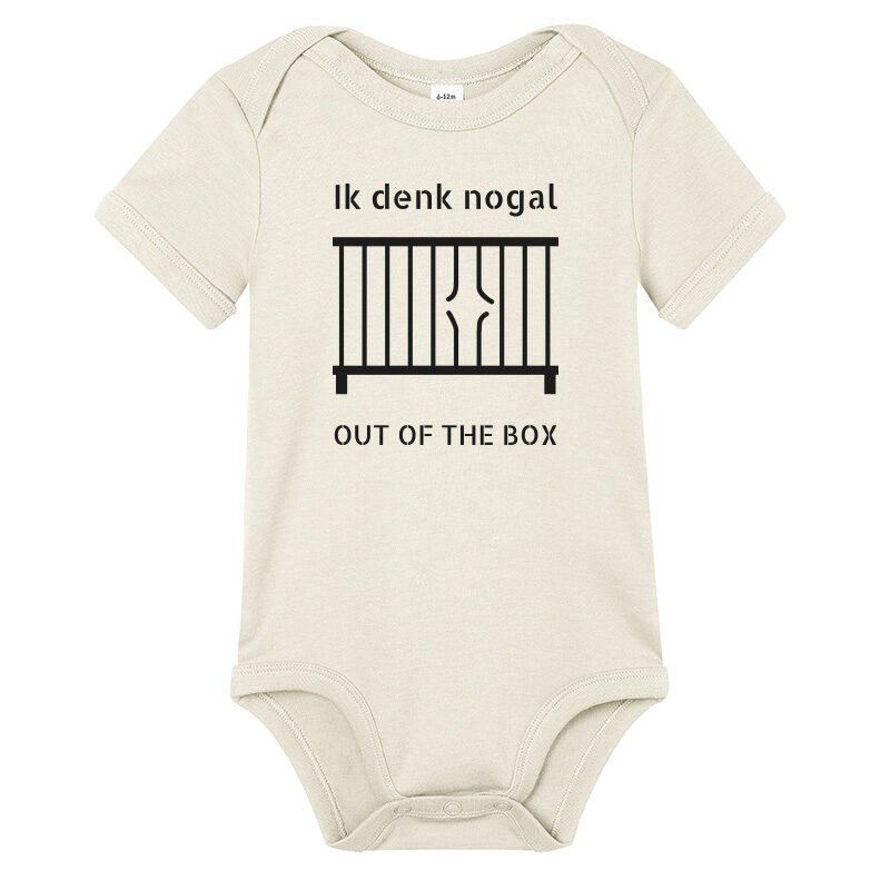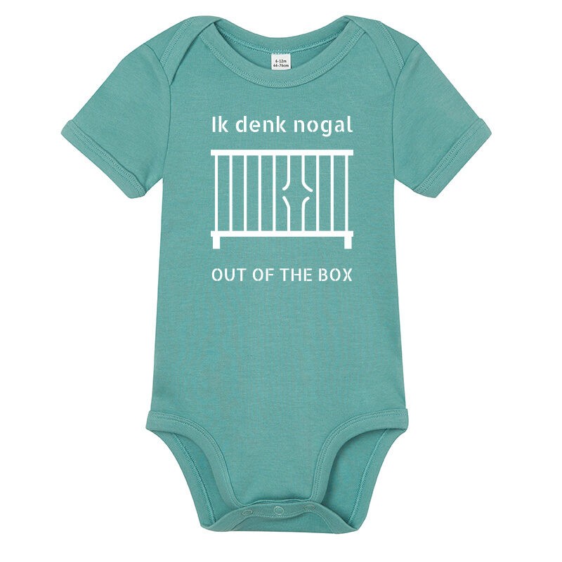 Niet elke baby past in het standaard plaatje. Met deze originele romper met de tekst “OUT OF THE BOX” laat je zien dat jouw kleine ontdekker zijn of haar eigen weg volgt.