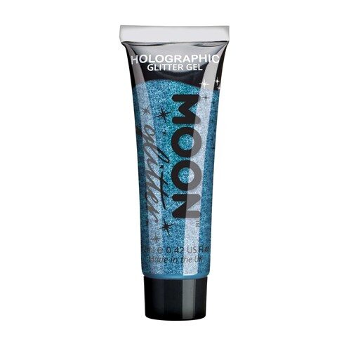 Maak van elke outfit een showstopper met holografische glittergel in blauw. De fijne glitters vangen het licht bij elke beweging – ideaal voor een glam touch op je jukbeenderen, schouders of decolleté.