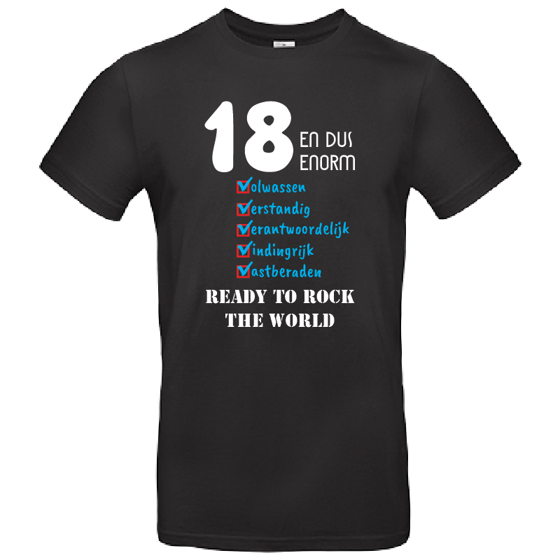 18 jaar – Ready to Rock the World T-shirt (blauw)